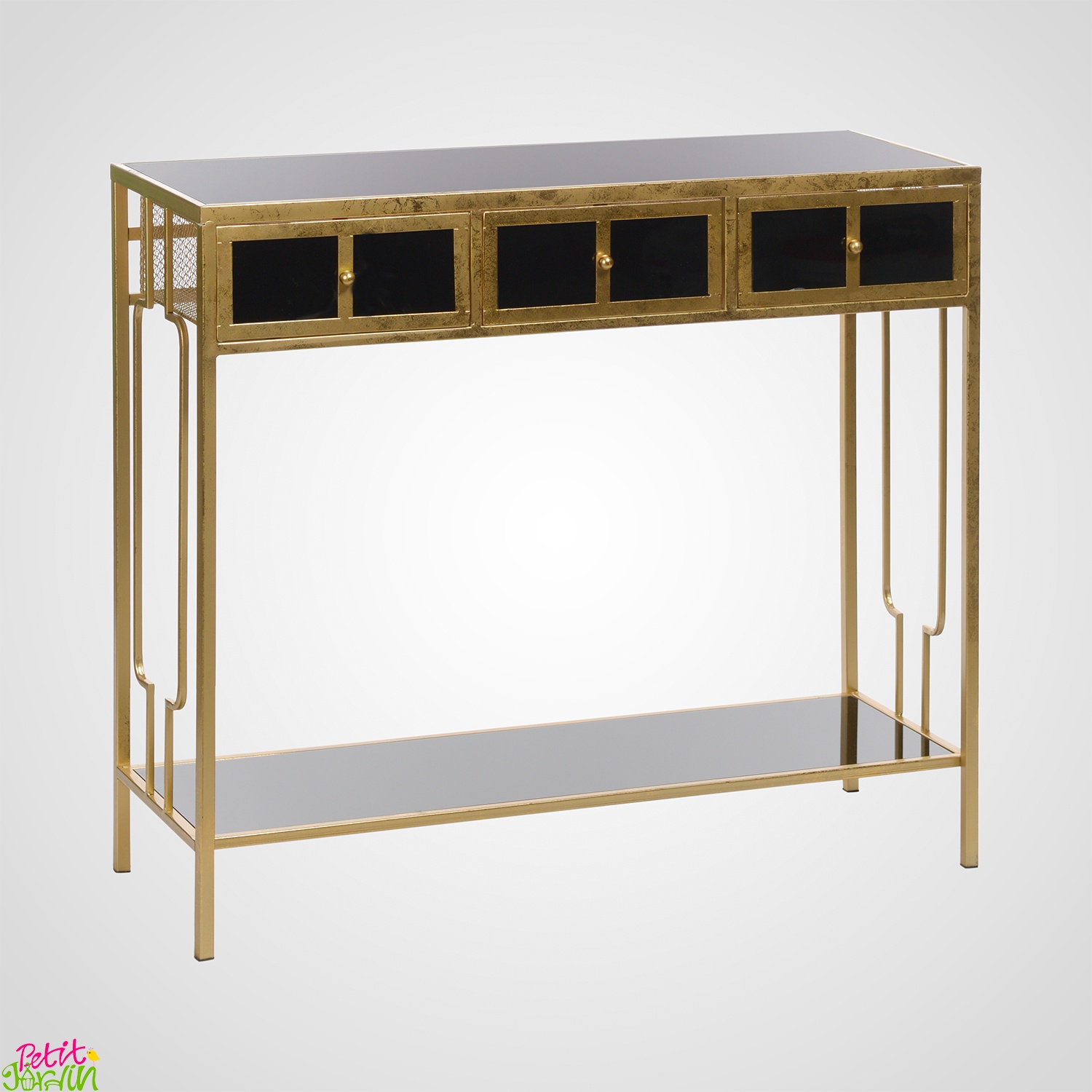 | Коллекция: | Дизайнерская Мебель Металл Золото/Серебро+Черное Стекло "Поталь" |
